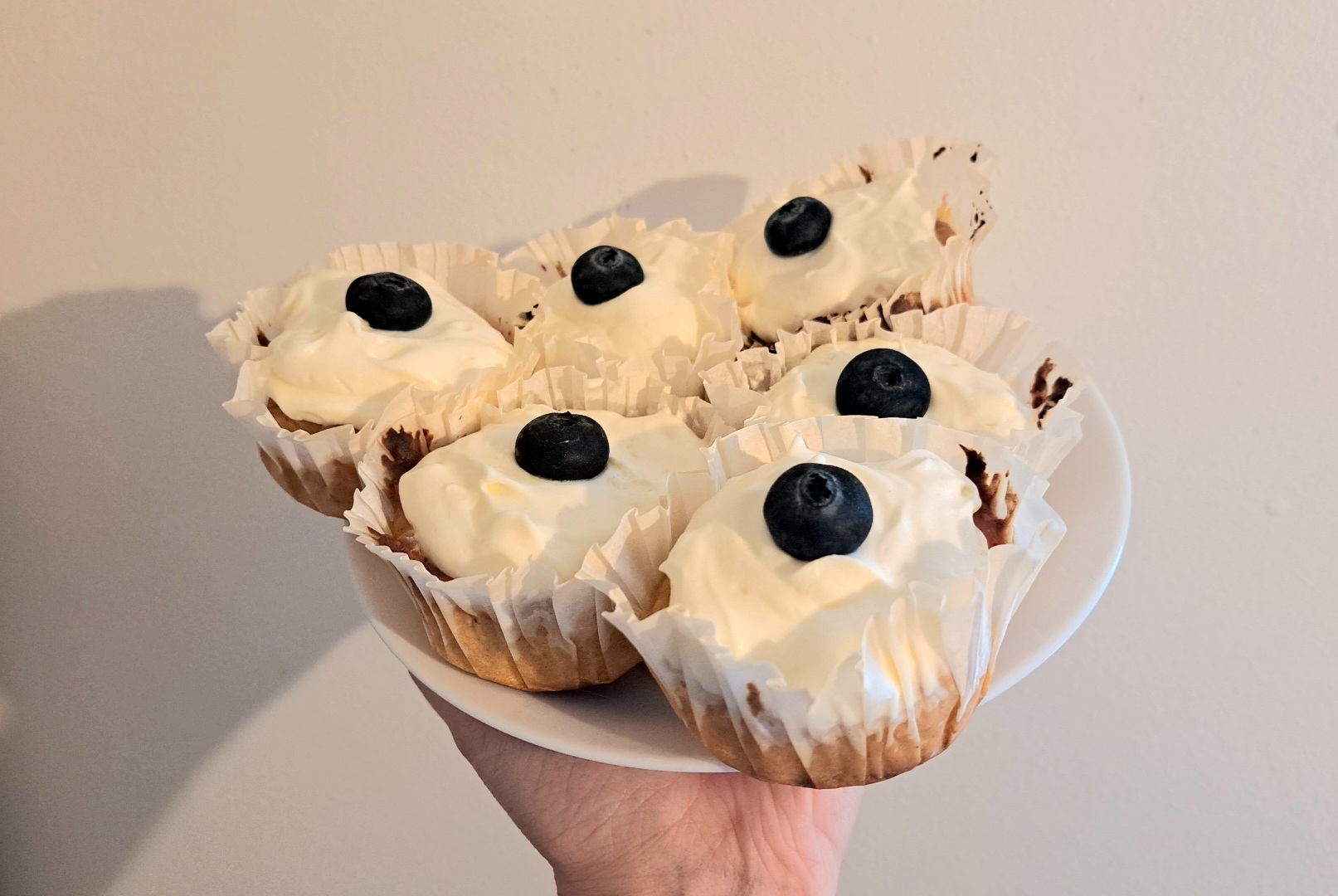 Voit testata kypsyyden tökkäämällä muffinssin keskelle hammastikun ja tarkistamalla, ettei siihen tartu taikinaa. Meillä uuni reistailee, joten sopiva aika toimivalla uunilla kiertoilmasta ym. riippuen lienee n. 20 min. Lopputuloksen tulisi olla pehmeähköä, jotta pienen lapsen on helppo sitä syödä.