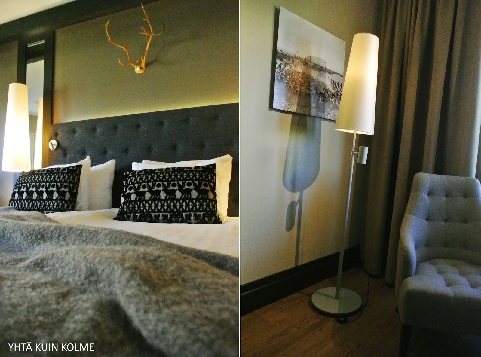 Myös hotellin oleskelutilat olivat hyvin kutsuvia! Ei ihan heti uskoisi sohvalla istuessaan, että nyt ollaan melkoisen kaukana oikeasta Lapista. Niin onnistuneesti on hotelli sisustettu.