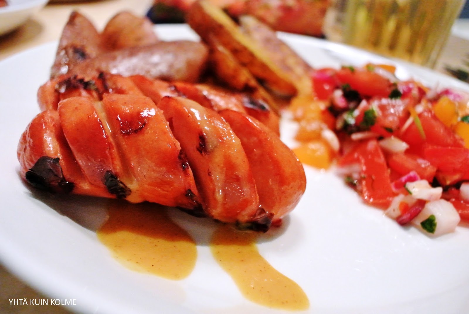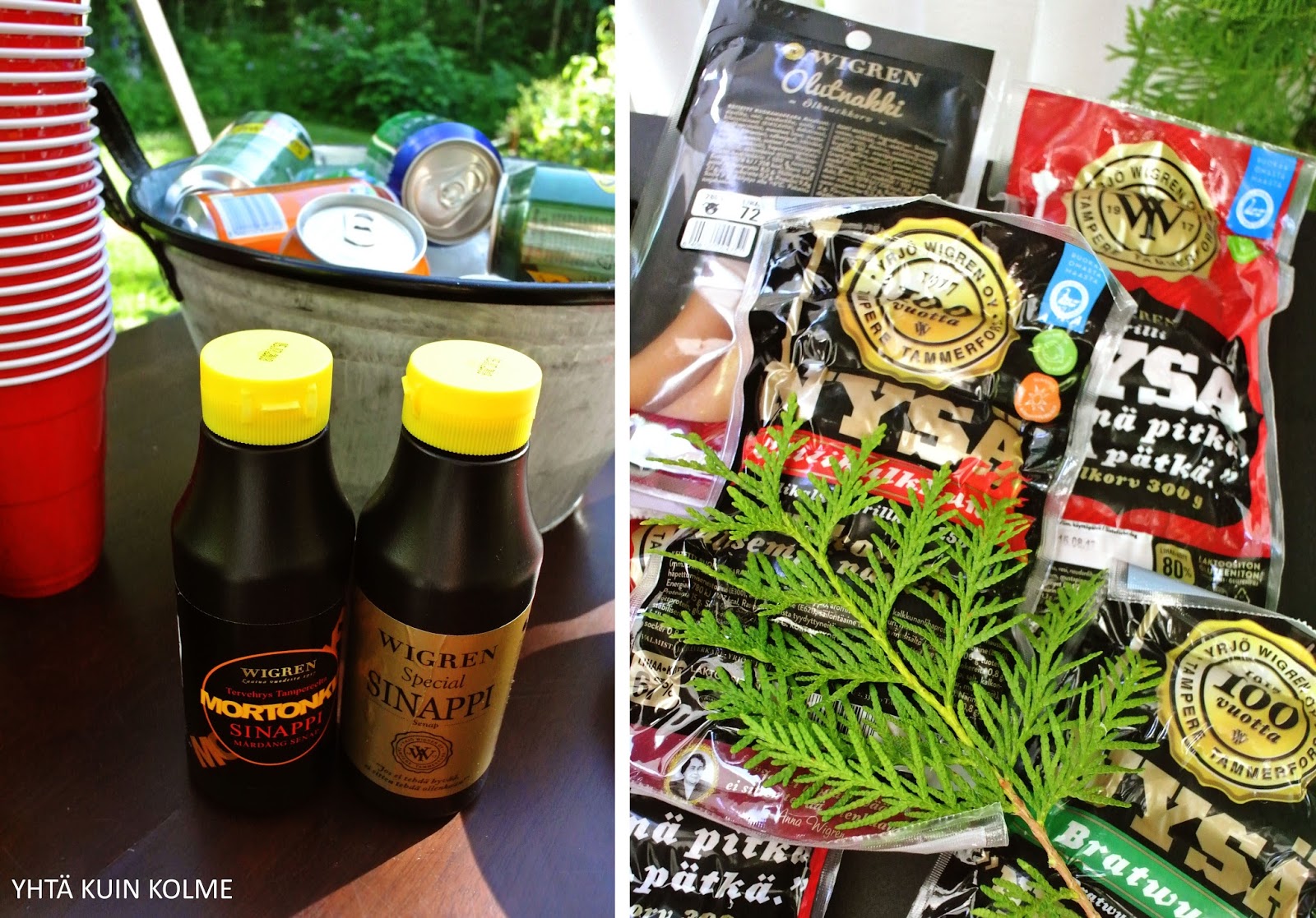 Ruokaisampana tarjottavana meillä oli Wigreniltä erilaisia makkaroita. Teimme illan aikana makutestausta ja suureksi suosikiksi nousivat Wigrenin Chili-Kalkkuna ”Nysät”. Saimme Wigreniltä myös erilaisia sinappeja testiin, ja vieraat valitsivat suosikikseen niistä ”Mortonki” -sinapin. Eräät Pohjanmaalta tulleet vieraat rakastuivat Mortonkiin niin, että lopulta saivat viedä loppusinapin jopa mennessään. Painottivat vielä, että kun menemme heille kylään, täytyy tästä lähin aina tuoda mukanaan juuri tätä sinappia. Kiitos siispä hienosta tuotteesta, Wigren!