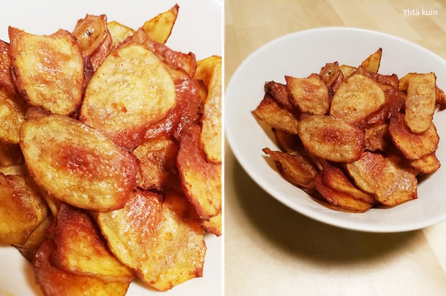 alkuun, vaikka periaatteessa herkut kuuluvatkin viikonlopuille.. Voishan nää toki tehdä vaikka muistakin juureksista! Ja öljy ei ole toki aivan pakollinen, kuten ei suolakaan..